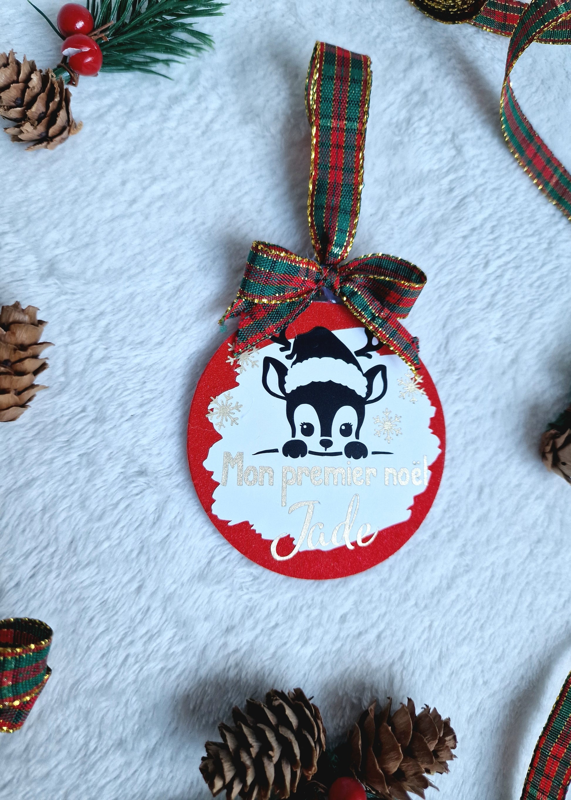Célébrez un moment magique avec cette superbe boule de Noël personnalisée "Mon premier Noël", idéale pour immortaliser la première fête de bébé. 💖