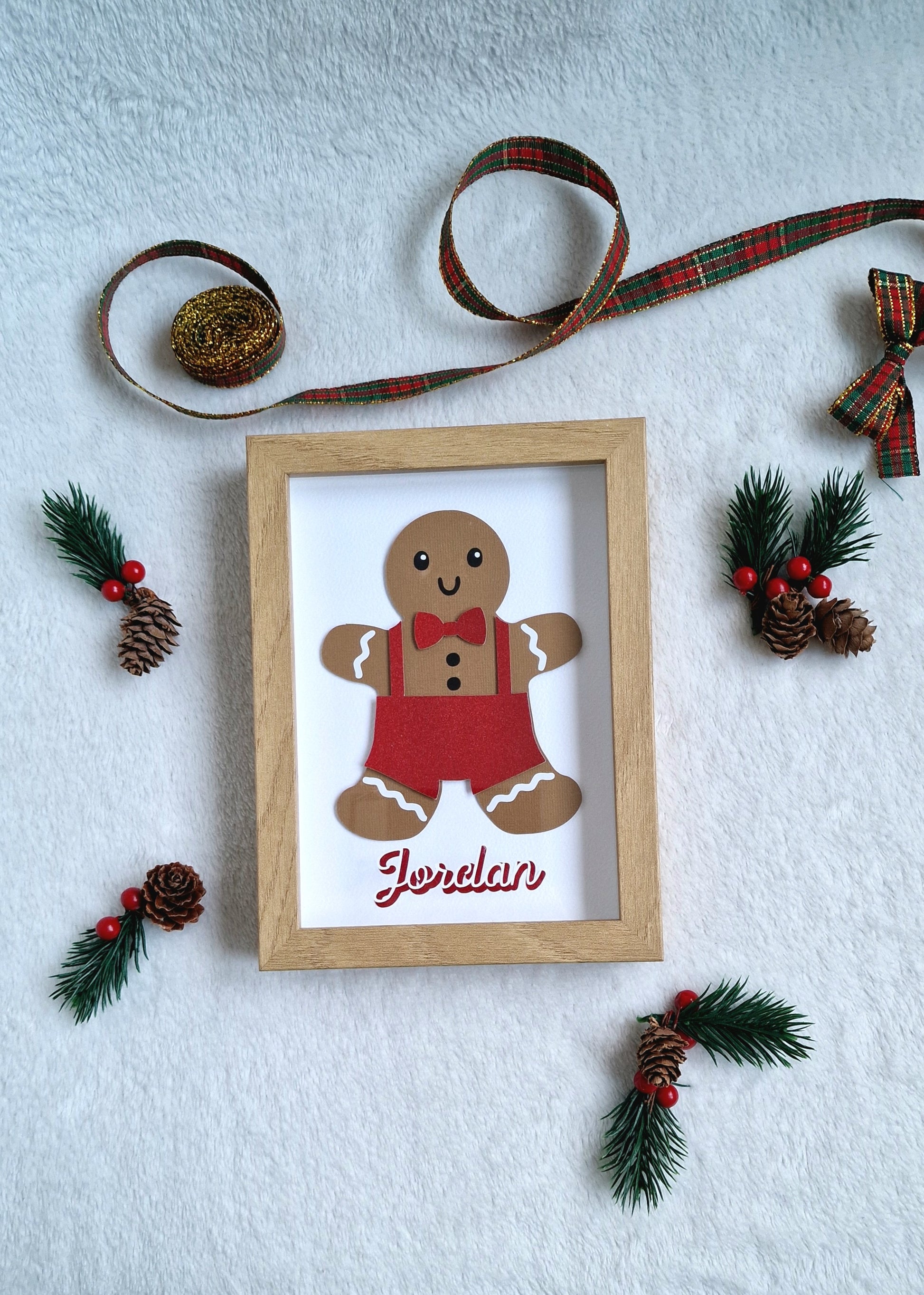 Plongez dans la magie de Noël avec ce cadre pain d’épices – version mini, entièrement réalisé à la main.